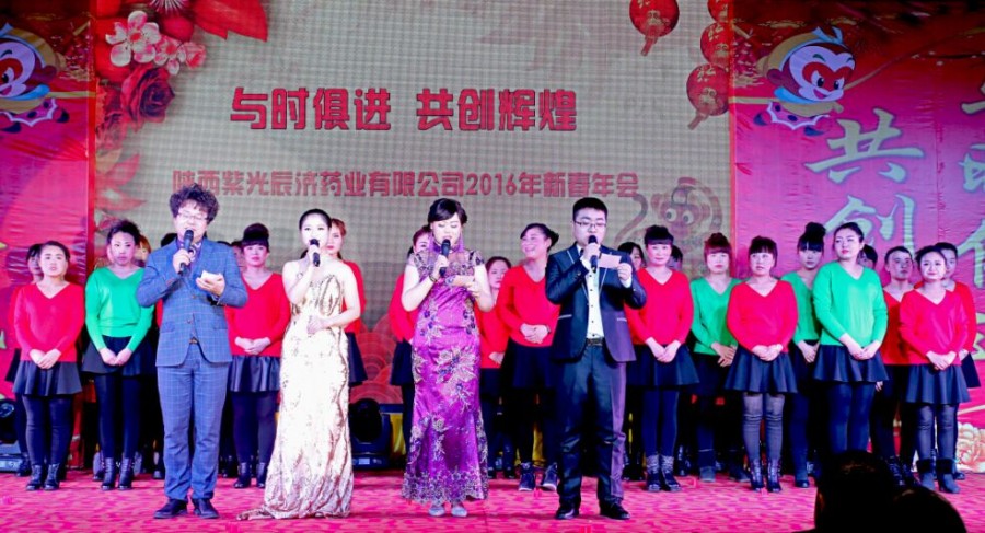 1月29日,公司在万利酒店西二楼宴会厅,举行2016年“与时俱进、共创辉煌”新春年会。清华控股高级副总裁、清华同方副董事长、深圳华融泰董事长黄俞、北京紫光制药有限公司董事长张轶、北京紫光制药有限公司总裁蒋朝文、华控赛格总裁邢春琪等领导,甘肃普尔康药业董事长刘明芳等40余位战略合作伙伴,来自公司各条战线的270余位职工和家属参加了年会。 会上,王总代表公司对各位来宾、全体同仁致新春贺辞,综合管理部经理张建华宣读了公司2015年度先进集体和个人表彰决定和2015年度质量通告。 集团领导黄总、 张总、蒋总,公司总经理王总分别给获奖人员颁奖并讲话。 活动现场,进行了精彩的职工文艺节目汇演和年会抽奖。当看到紫光辰济员工精彩的表演后,集团领导非常高兴,黄总、张总、蒋总、邢总,分别多次设立红包,现场抽奖,将晚会推向新一轮高潮。 为办好本次年会,各部门利用班中休息时间认真排练节目,综合管理部用一个月时间加班加点准备年会所需材料、物资、文案、组织节目彩排,抽调各部门人员组成现场保障组,确保了年会的成功。