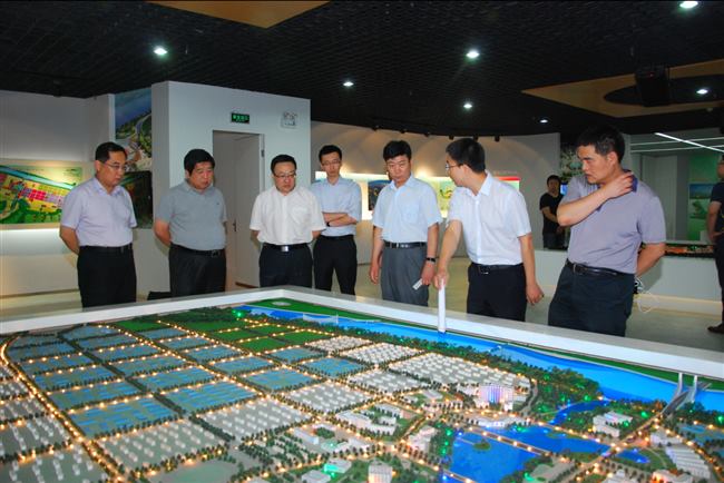 王琳市长(左)陪同集团领导参观高新区科技新城规划展览室