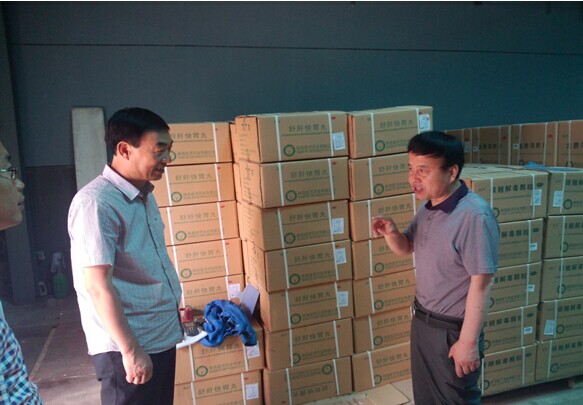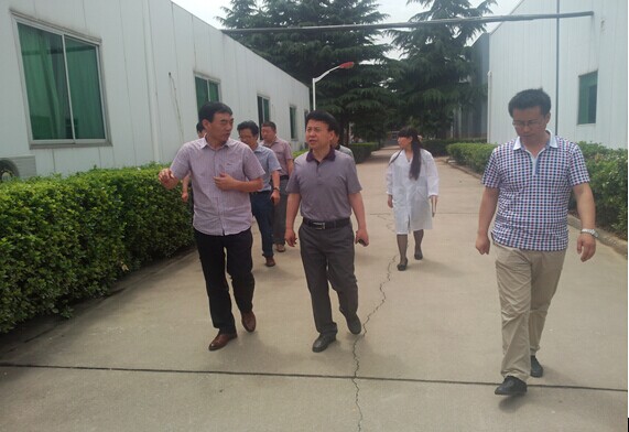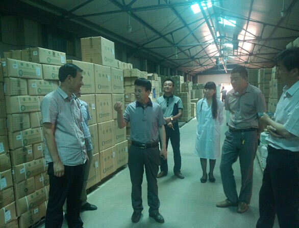 上图为我公司总经理王睿成陪同市食品药品监督管理局局长韩满奎等领导参观我公司制药厂。