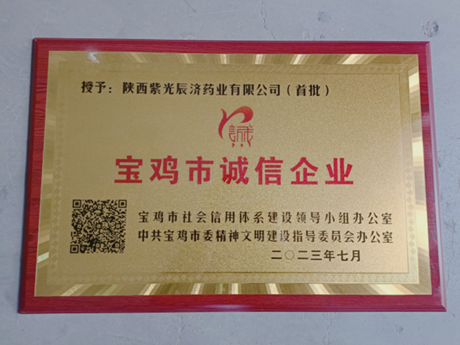 好消息!紫光辰济药业荣获“宝鸡市首批诚信企业”荣誉称号 |