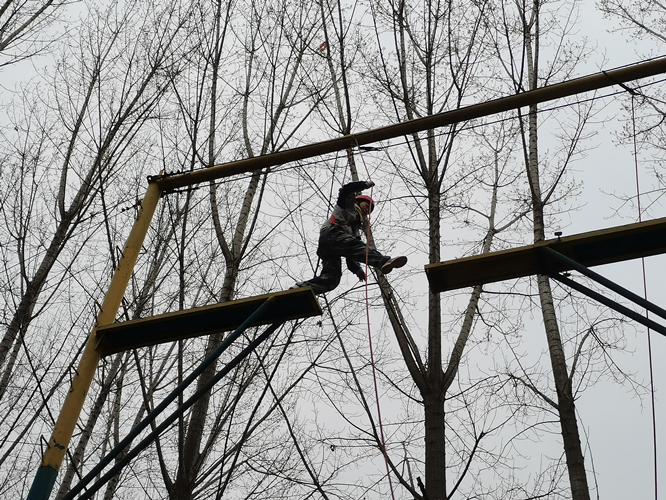 “智慧汉诺塔”活动中团队群策群力 “高空断桥”是一个具有挑战性,最锻炼个人自信,激发潜能的拓展项目之一,为所有成员提供一个既定的目标,并在这个目标达成过程中设置一系列包括生理和情感上的障碍,通过在达成目标的过程中,带给大家深刻感受,从中体会到目标实现过程中的勇气、方案和风险承担的必要和重要。
